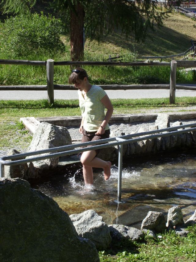 Kneippanlagen am Grächener See mit drei Wassertretbecken, einem Armbad, vier Trockenbecken mit Kieselsteinen sowie einer Guss-Station. Ein zweites Kneippbecken liegt auf dem Wanderweg von Grächen ins Bärgji.